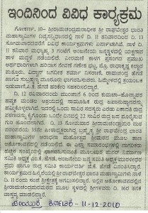 ಶ್ರೀಕ್ಷೇತ್ರದಲ್ಲಿ ವಿವಿಧಕಾರ್ಯಕ್ರಮಗಳು.